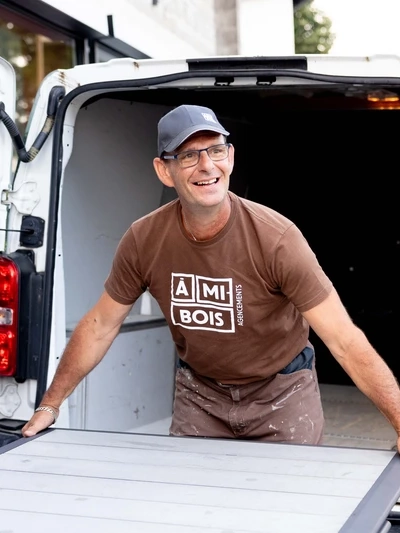 Entre atelier et projets, découvrez une première partie de l’équipe en images — dans son élément, entre copeaux, rires et savoir-faire.