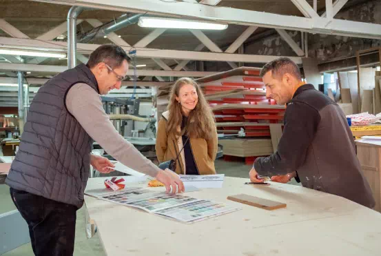 À distance, dans notre atelier, ou sur site, ce premier échange fera ensuite l’objet d’un chiffrage. Notre salle d’exposition vous permet de découvrir des exemples de réalisations ou les finitions disponibles. Vous avez un interlocuteur À Mi-Bois unique durant toute la durée du projet.