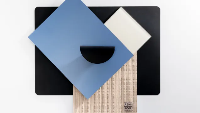 Pour une cuisine ou un bureau, on peut retrouver le laiton, le bleu nuit, le noyer et le marbre noir. Des teintes sourdes, élégantes et apaisantes, renforcées par un revêtement texturé type Bolon, qui imite la fibre naturelle sans ses contraintes;