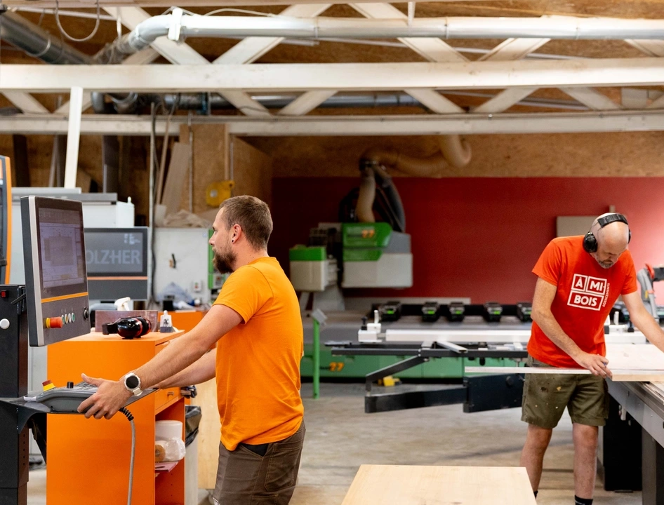 Composée de menuisiers, d’ébénistes et d’installateurs, nous avons toutes les compétences dans un même lieu. Notre force, c’est la passion des compagnons qui travaillent dans l’atelier À Mi-Bois.